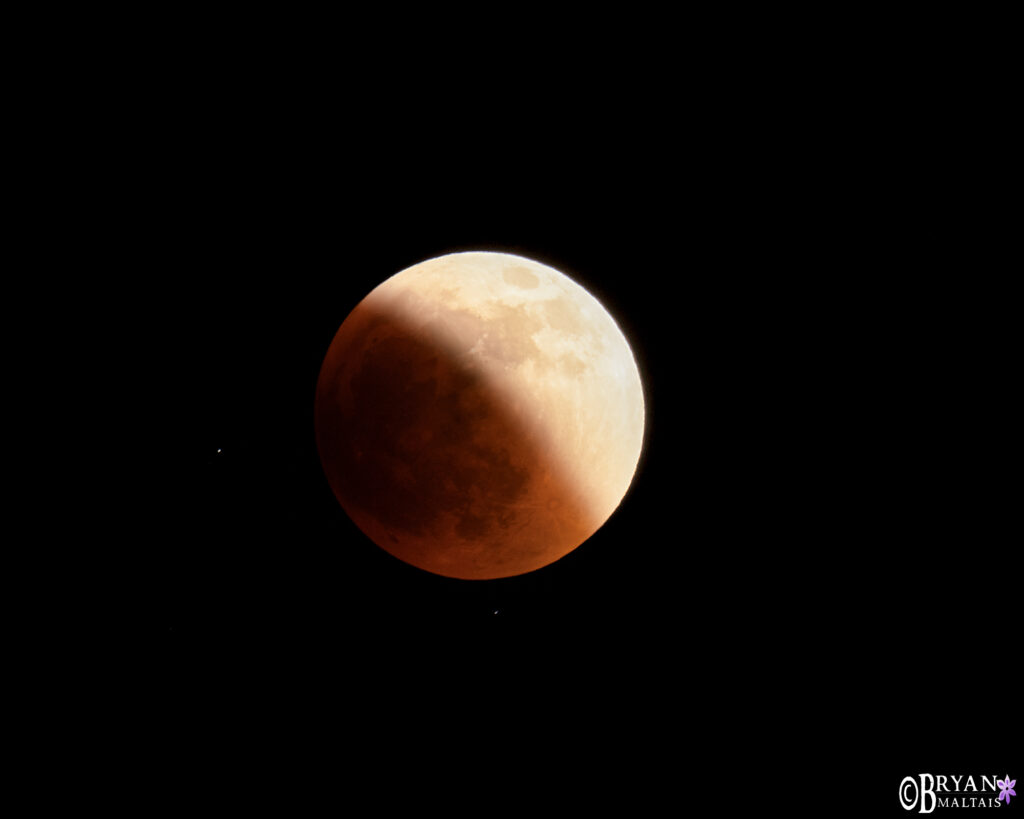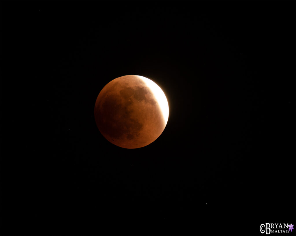 This is a merged image of two photos taken at different exposures. While the human eye was able to see both the lit and eclipsed portions of the moon, the camera lacks the dynamic range to capture both in the same exposure. I took two sequential shots; one at 1/125th sec to capture the lit surface, and one at 1/2 sec for the Shadow. In other words, I took a fast exposure and a long exposure, which let in little and much light, respectively. The moon turns red because the small amount of the sun’s light that shines on the moon during the eclipse “bends” around the Earth and filters through a long distance of atmosphere. There, blue light is filtered out leaving red. That’s the same reason sunsets are orange; because the sun’s light is bending over the surface of the Earth at a very low angle and traveling for a long distance through the atmosphere. Taken with a Sony A7R IV and 200-600mm lens @ 600mm.
