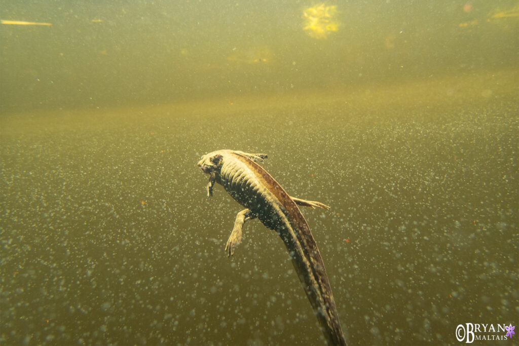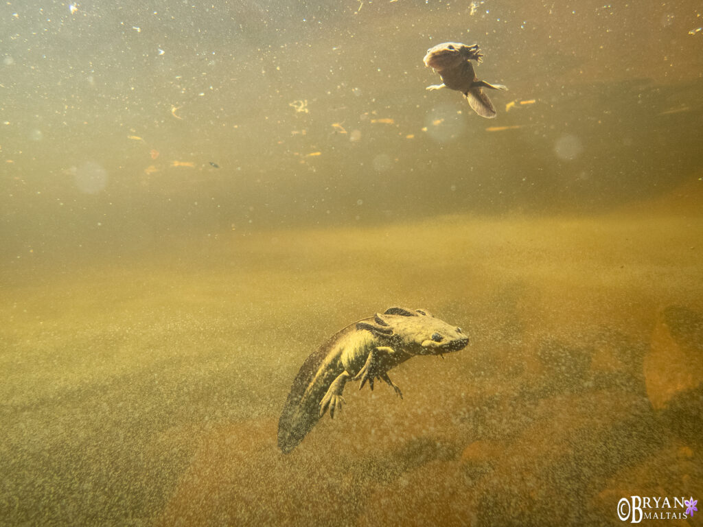 Capturing these underwater photos was challenging because I couldn’t actually see what I was shooting. My camera was on the end of a long selfie stick to get closer to the Salamanders. I set the camera on time-lapse mode to shoot continuously as I maneuvered it in place and hoped for the best.